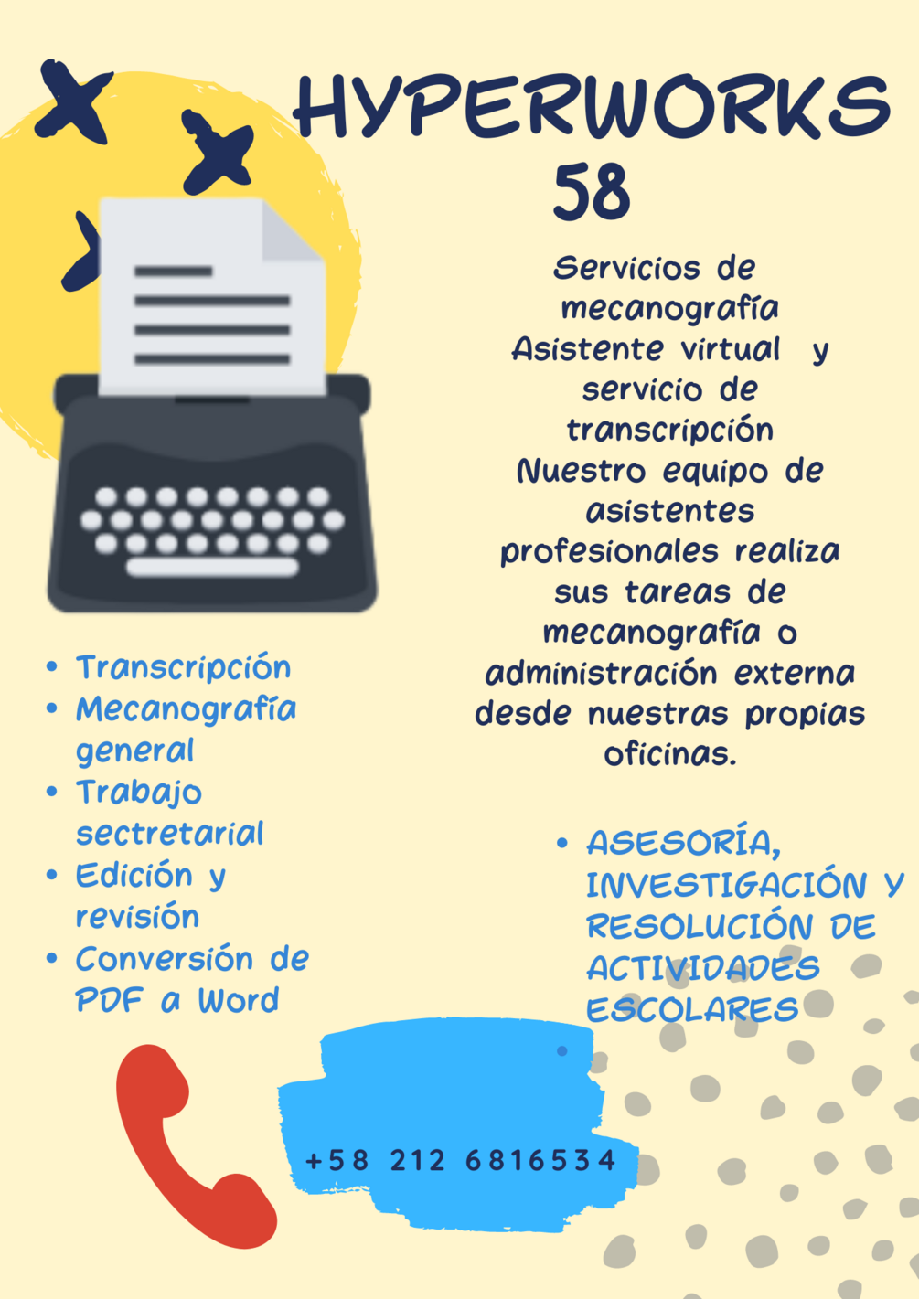 - Mecanografía: podemos transcribir tus documentos manuscritos o grabaciones de audio en texto digital.